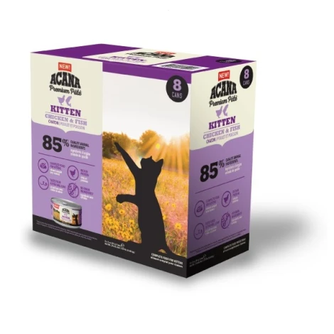 Každá mačka si zamiluje toto chutné balenie konzerv pre mačiatka Acana Cat Paté. Kvalitné mäso v podobe paštéty v praktickom väčšom balení ocení mnoho majiteľov. Obsahuje lososový olej pre zdravú kožu a lesklú srsť mačiatok. Bez obilnín a iných pridaných konzervačných látok.