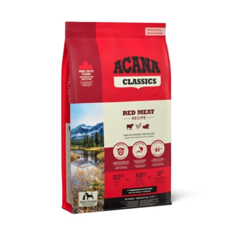 Acana Dog Classics Red Meat s hovädzím, jahňacím a bravčovým mäsom je kompletné krmivo pre psy všetkých vekových kategórií a plemien. Veľmi pestrá a bohatá receptúra zložená z jednoduchých a zdravých zložiek podporí imunitné funkcie, zdravé trávenie a zdravú kožu a srsť.