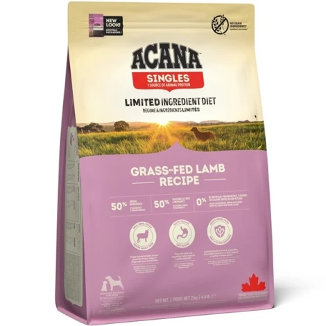 Acana Dog Singles Grass-fed Lamb je krmivo vhodné pre psov všetkých plemien i veku. Obsahuje mäso z novozélandských jahniat. Vhodná aj pre psíkov s veľmi citlivým zažívaním.
