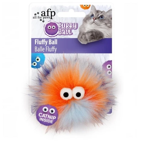 Roztomilá chlpatá hračka pre mačky AFP Fluffy Furry Ball. Príšerka obsahuje kocúrnik pre ešte väčšiu zábavu pri hre. Vďaka výrazným farbám a svojej huňatosti je táto hračka naozaj nepriehľadnuteľná. Roztomilý dizajn dopĺňajú vtipné veľké oči, hračka tak vyzerá ako malá príšerka. Loptička Fluffy Ball je vyrobená z unikátneho materiálu, plyšu s dlhým vlasom, ktorý si vaša mačka rozhodne obľúbi.