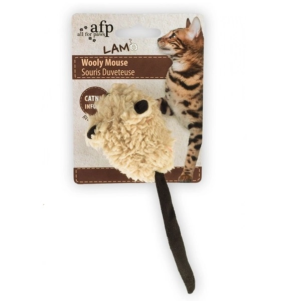 odstrániťMyška z umelej ovčej vlny AFP Lamb, ktorá pri pohybe vydáva zvuk ako pravá myš a podporuje hravé inštinkty. Myš naviac obsahuje catnip, ktorý podporí hravosť mačiek.
