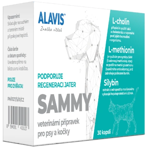 Alavis Sammy je prípravok pre psov a mačky obsahujúci kombináciu látok L-metionínu a silybínu – extraktu z pestreca mariánskeho. Obe látky sú známe pre svoj pozitívny vplyv na pečeň a jej regeneráciu. Pečeň je hlavným a najdôležitejším orgánom pre metabolizmus a detoxikáciu.