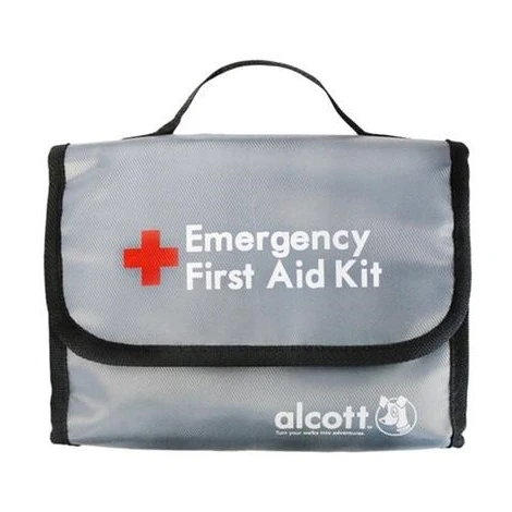Cestovná lekárnička Alcott ukrýva všetko potrebné na ošetrenie ľudí, psov i mačiek. Obsahuje obväzy, náplaste, dezinfekciu, nožnice, vyťahovač na kliešte, roztok na popáleniny, antibakteriáolní gél, mnoho ďalších potrieb na ošetrenie najrôznejších druhov zranenia.