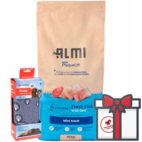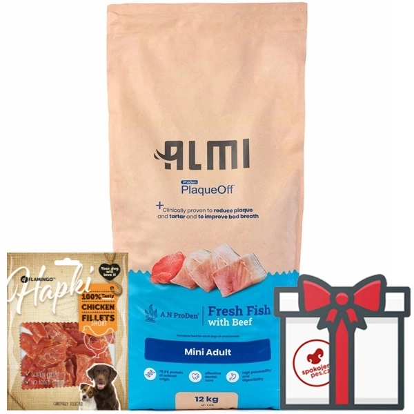 Superprémiové krmivo Almi poskytuje komplexnú stravu s ohľadom na potreby dospelých psov malých plemien. Vysoké množstvo čerstvých a kvalitných rýb a hovädzieho mäsa spolu s ryžou, jablkami a brusnicami zabezpečujú absolútne bezchybnú stravu. Ryža zaistí dobrú stráviteľnosť krmiva, podporí trávenie a hodí sa aj pre maznáčikov s citlivým zažívaním alebo alergiou na lepok.