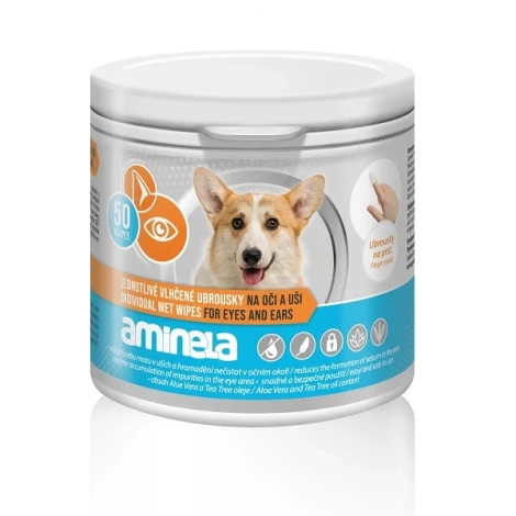 Obrúsky na čistenie uší a očí zvierat Aminela. Obrúsky sú bezpečné a ľahko sa používajú. Vhodné ako prevencia proti zápachu a infekcii zvukovodu. Účinne odstraňujú ospalky a slzy. Na jedno použitie.
