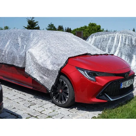 Pri ponechaní psa v aute nechajte kufor alebo bočné okná otvorené. Plachta musí zakrývať dvere a všetky okná. Účinok plachty sa ešte o niečo zvýši pokiaľ zakryjete aj kapotu. Na dokonalé upevnenie plachty na aute, zvlášť vo veternom počasí, odporúčame magnetické háčiky, ktoré prevlečiete cez kovové krúžky v spevnených okrajoch plachty.