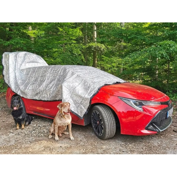 Chráňte seba a svojho psa pred prehriatím v letných mesiacoch. Vysoko účinná ochranná plachta proti UV žiareniu do auta alebo stanu s 90 % tienením odráža slnečné žiarenie a teplo a zabraňuje jeho hromadeniu. Ideálny pomocník na kempovanie alebo rôzne akcie so psom.