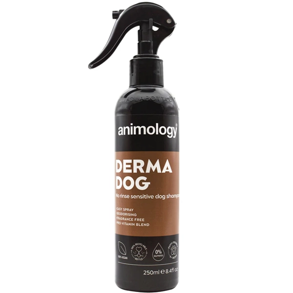 Šampón v spreji pre citlivé psy. Šampón Animology Derma Dog No Rinse je obohatený o vitamíny a hĺbkovo čistiacim účinkom, ktorý odstraňuje nečistoty a zápach a zanecháva srsť vášho chlpatého priateľa čistú, jemnú a zdravú bez potreby oplachovania.