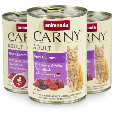 Lahodná konzerva Animonda Carny Adult s hovädzím a jahňacím mäsom je kompletné a vyvážené krmivo pre dospelé mačky. Obsahuje špeciálnu kombináciu antioxidantov na podporu imunity a je vyrobené len z kvalitného mäsa. Neobsahuje farbivá a umelé konzervačné látky.