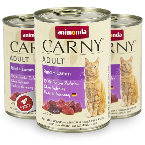 Animonda Carny Adult je chutná mäsová konzerva, ktorá spĺňa prirodzené nutričné potreby dospelých mačiek. Receptúra so starostlivo vybranými kusmi hovädzieho mäsa, jahňacieho mäsa a vnútorností poskytuje vysoký obsah kvalitných bielkovín. Okrem toho obsahuje špeciálnu kombináciu antioxidantov, ktoré pomáhajú posilňovať imunitný systém. Krmivo neobsahuje žiadne umelé farbivá ani konzervačné látky, takže si vaša mačka môže vychutnať čisto mäsitú chuť.