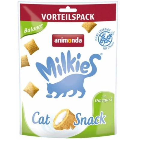 Chrumkavé vankúšiky pre mačky Animonda Milkies. Tieto chutné odmeny s omega 3 pomáhajú podporiť mrštnosť a pohyblivosť vašej mačky. Bez obilnín, sóje, farbív a konzervačných látok. Tieto výnimočné maškrty si zamiluje každá mačka!