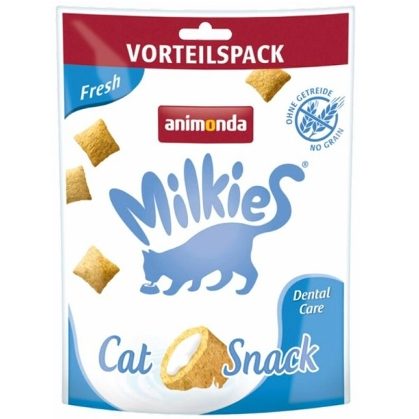 Chrumkavé vankúšiky pre mačky Animonda Milkies. Tieto chutné odmeny na podporu dentálnej hygieny pomáhajú predchádzať vzniku zubného kameňa. Bez obilnín, sóje, farbív a konzervačných látok. Tieto výnimočné maškrty si zamiluje každá mačka!
