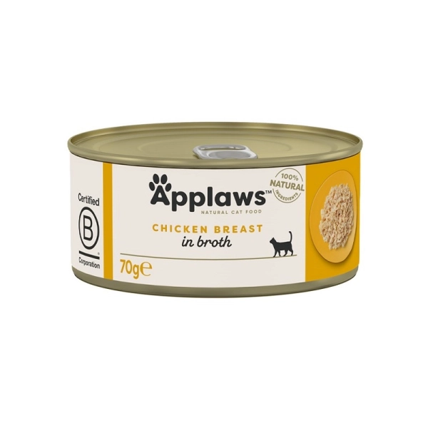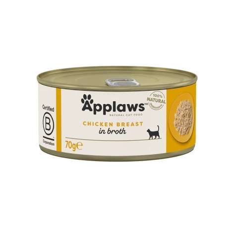 Konzerva Applaws - ultraprémiové konzervované krmivo pre mačky s vysokým obsahom veľmi kvalitných kúskov kuracích pŕs, ktoré sú v lahodnom a šťavnatom rôsole.