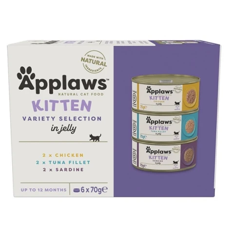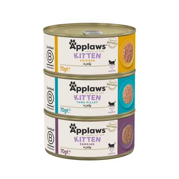 Applaws obsahuje mix konzerv s kuracím a rybím mäsom. 100 % prírodné krmivo bez umelých konzervačných látok, farbív alebo dochucovadiel. Ideálne v období prechodu na pevnú stravu, vývoja a rastu. Applaws je ľahko stráviteľné, nutrične vysoko hodnotné, prirodzene hypoalergénne a hlavne veľmi chutné kŕmenie. Vaše mačiatka si Applaws zamilujú!