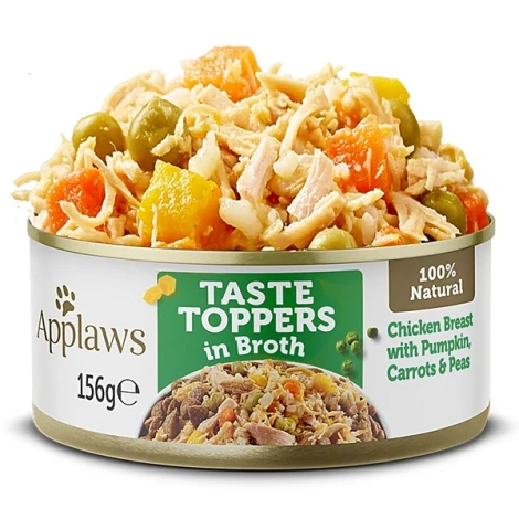 Váš pes si zamiluje konzervu plnú kuracích kúskov v lahodnom vývare Applaws Dog Taste Toppers. Doplnkové krmivo pre dospelé psy vyrobené len z prírodných surovín, bez umelých farbív a konzervačných látok.