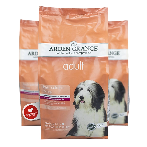Superprémiové krmivo Arden Grange Dog Adult with Fresh Salmon & Rice s čerstvým lososom a ryžou pre dospelých psov s normálnou aktivitou. Prirodzene hypoalergénne, vysoko stráviteľné a obzvlášť prospešné pre kožu a srsť.
