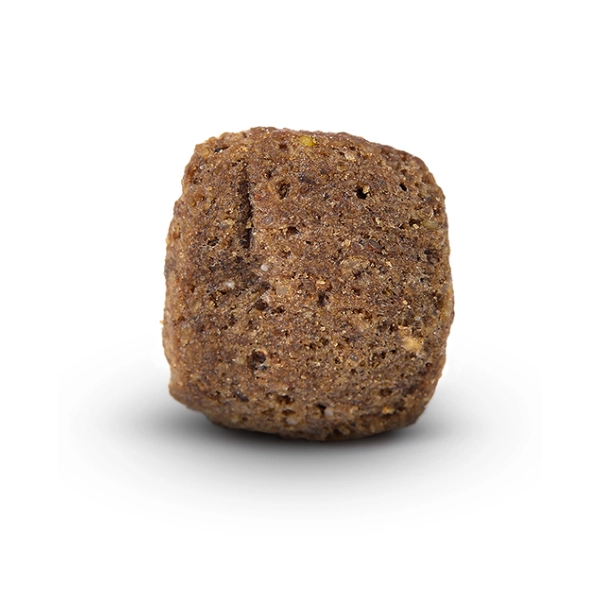 Kurča (kuracia múčka 22 %, čerstvé kura 5 %), ryža 22 %, kukurica, repná dužina, rafinovaný kurací olej, celé ľanové semienko, kurací extrakt, sušené vajcia, kvasnice, krill, minerály, prebiotické FOS,40 mg (740 mg/kg), chondroitín (520 mg/kg), brusnice, extrakt z juky, nukleotidy.