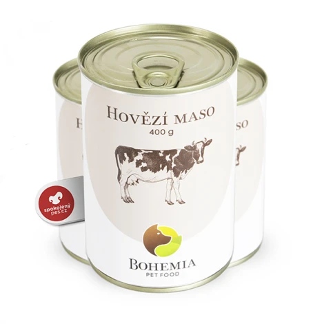 Poctivá konzerva Bohemia so 70 % obsahom hovädzieho mäsa plemena Angus. Zvyšok tvorí vývar a za studena lisovaný ľanový olej. Single proteín receptúra, ktorá je ideálna aj pre alergických psov.