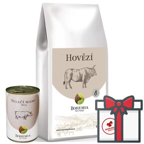 Chutné kompletné krmivo pre psov Bohemia B s čerstvým hovädzím mäsom. Neobsahuje obilniny, kuracie mäso a tuk. Formula B je stredne silná formula - obsahuje stredné množstvo bielkovín, tukov a energetickej hodnoty. Preto je vhodná pre šteňatá veľkých plemien, dospelé psy pri bežnej aktivite a staršie psy pri zvýšenej aktivite. Krmivo je konzervované prírodnými a doplnkovými antioxidantmi (vitamínmi). Receptúry Bohemia Pet Food spĺňajú odporúčania výživových smerníc Európskej federácie priemyslu pre domáce zvieratá v zájmovom chove.