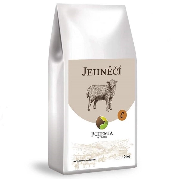 Kompletné krmivo s čerstvým jahňacím mäsom Bohemia. Receptúra C je vhodná pre šteňatá obrích plemien od 18 do 24 mesiacov, dospelých psov s nízkou aktivitou a starých psov s normálnou aktivitou.