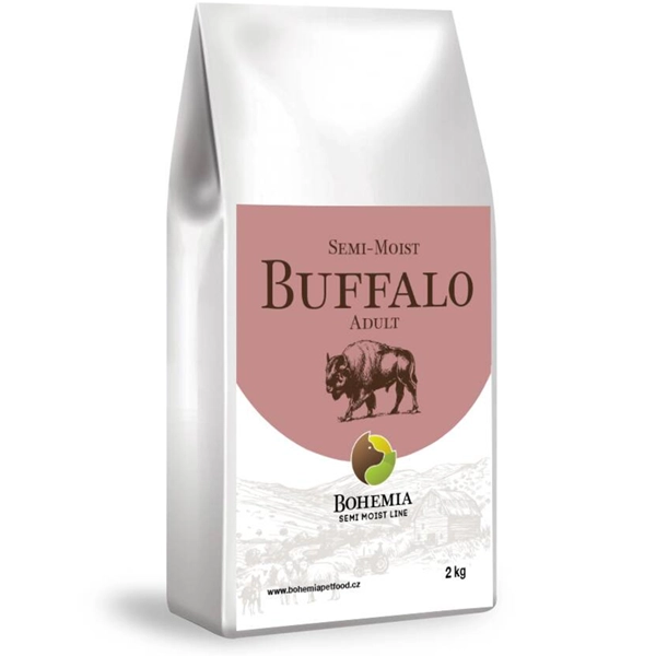 Kompletné krmivo pre dospelé psy, ktoré kombinuje výhody suchého a vlhkého krmiva. Granule Bohemia Semi-Moist Adult Buffalo ponúkajú pohodlie suchého skladovania spolu s atraktívnou jemnou textúrou. Povzbudí chuť do jedla vyberavých psov a uľahčí život starším chlpatým priateľom a psom s problémami so zubami, ktorí majú problém s hryzaním tvrdých granúl.