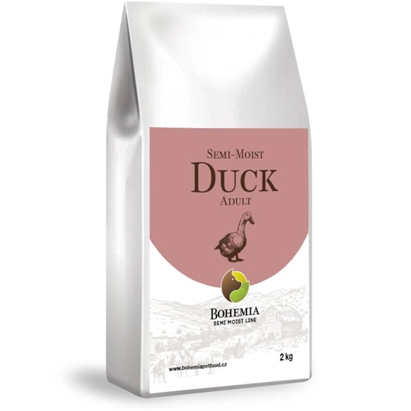 Kompletné krmivo pre dospelé psy, ktoré kombinuje výhody suchého a vlhkého krmiva. Granule Bohemia Semi-Moist Adult Duck s kačacím mäsom ponúkajú pohodlie suchého skladovania spolu s atraktívnou jemnou textúrou. Povzbudí chuť do jedla vyberavých psov a uľahčí stravovanie starších chlpatých kamarátov a psov s problémami so zubami, ktorí majú problémy s hrýzaním tvrdých granúl.