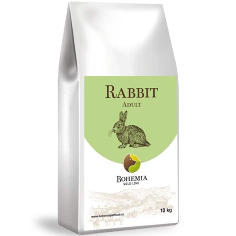 Bohemia Wild Adult Rabbit je kompletné krmivo z králičieho mäsa pre dospelé psy všetkých plemien. Králičie mäso je vysoko výživné, má nízky obsah tuku a je menej alergénne ako iné druhy mäsa. Je vynikajúcou alternatívou pre psov s citlivým trávením a potravinovými alergiami, pretože je známe svojou ľahkou stráviteľnosťou. Králičie mäso je bohaté na bielkoviny podporujúce rast a regeneráciu svalov, je dobrým zdrojom fosforu, selénu a vitamínov skupiny B a má prirodzene nízky obsah tuku.