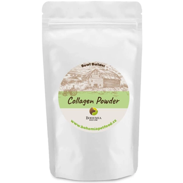 Podporte zdravie kĺbového systému vášho psíka sušenými hovädzími väzmi. Výživový doplnok Bohemia Wild Collagen Powder zdokonaľuje dennú porciu krmiva po výživovej aj chuťovej stránke. Jemný prášok sa jednoducho zamieša do krmiva a je hotovo.
