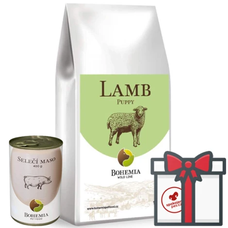 Bohemia Wild Puppy Lamb je kompletné krmivo s jahňacím mäsom pre šteňatá všetkých plemien. Jahňacie mäso je jedným z najobľúbenejších druhov mäsa, pretože je ľahko stráviteľné, menej alergénne a je ideálnou alternatívou pre psy s citlivým trávením. Jahňacie mäso je tiež vynikajúcim zdrojom bielkovín pre rast a obnovu svalov, obsahuje zdravé tuky pre zdravú kožu a srsť a je bohaté na minerály, ako je zinok, železo a mnohé ďalšie. Jeho prirodzená a jedinečná chuť priláka k miske nejedného malého jedáka.