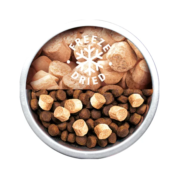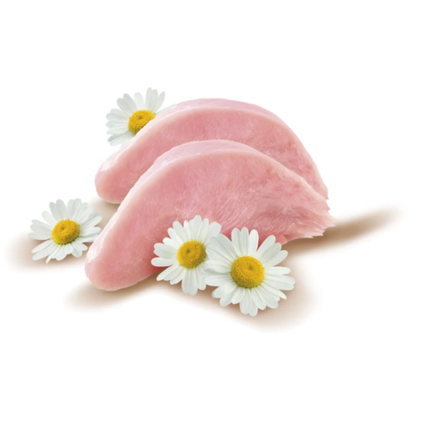 Čerstvé morčacie odrezky (96 %), lignocelulóza (2 %), sušený harmanček (0,5 %), hydrolyzované kvasnice (0,5 %, zdroj inozitolu a aminokyselín), inaktivované baktérie a ich časti (Lactobacillus helveticus HA-122, 15x109 buniek/kg).