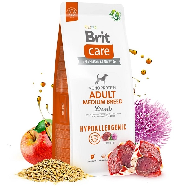 Superprémiové Brit Care Dog Hypoallergenic krmivo obsahuje jediný zdroj živočíšnych bielkovín. Podporuje prevenciu alergických reakcií na potraviny. Zloženie je vhodné pre psy s citlivým trávením, psy nereagujúce dobre na bielkovinové krmivá, a psy s vysokým potenciálom vzniku potravinových alergií. Určené pre dospelých psov stredných plemien s hmotnosťou od 10 do 25 kg.