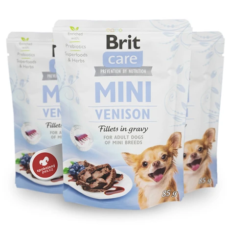 Kompletné superprémiové krmivo vo forme filetek mäsa v lahodnej omáčke - to sú nové Brit Care Dog kapsičky, ktoré sú vyvinuté špeciálne pre prieberčivé jazýčky malých a mini plemien. Receptúra s divinou je vhodná pre dospelých psíkov.