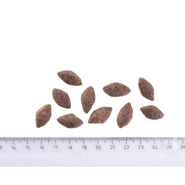 Kuracie mäso (40 %) (dehydrované kuracie mäso, hydrolyzované kuracie mäso), ovos (26 %), dehydrovaný hmyz (14 %), kurací tuk, prírodná aróma, pivovarské kvasnice, lososový olej (2 %), sušená jablková dužina, hrachová múka, glukozamín (300 mg/kg), fruktooligosacharidy (230 mg/kg), chondroitínsulfit (230 mg/kg), manánové oligosacharidy (180 mg/kg), yucca schidigera (180 mg/kg), semená ostropestreca mariánskeho (110 mg/kg), beta-glukány (60 mg/kg), sušený srdcovník (60 mg/kg), sušený rakytník (60 mg/kg), probiotiká Lactobacillus helveticus HA 20 122 inaktivované (15x109 buniek/kg).