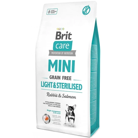 Jedinečné krmivo Brit Care Mini GF Light & Sterilised je určené najmenším psíkom, ktorí trpia nadváhou, potrebujú znížiť hmotnosť alebo sú po kastrácii. Krmivo je vhodné pri znižovaní telesnej hmotnosti a napomáha predchádzať nadváhe.