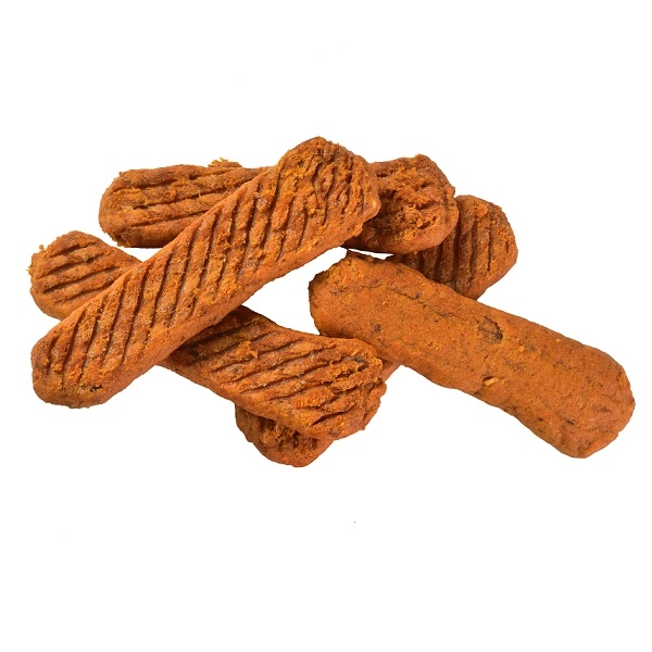 Mäsové žuvačky Brit Jerky Salmon Protein Bar vo forme proteínovej tyčinky. Tyčinky obsahujú 85 % mäsa z lososa a kurčaťa a sú úplne bez obsahu obilnín, farbív, cukru a GMO.