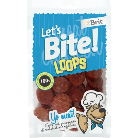 České žuvačky - BRIT Let's Bite Loops. Šťavnaté a veľmi chutné kuracie chipsy pre skutočných labužníkov. Pochúťky sú mäkké, možno ich ľahko nakrájať. Veľmi vhodné aj pre šteniatka.