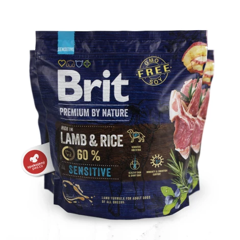 Kompletné prémiové krmivo Brit pre psov všetkých plemien s citlivým zažívaním. Vyrába sa z čerstvého aj sušeného jahňacieho mäsa, ryže, má tak vynikajúcu chuť a je ľahko stráviteľné. Granule neobsahujú GMO ani sóju.
