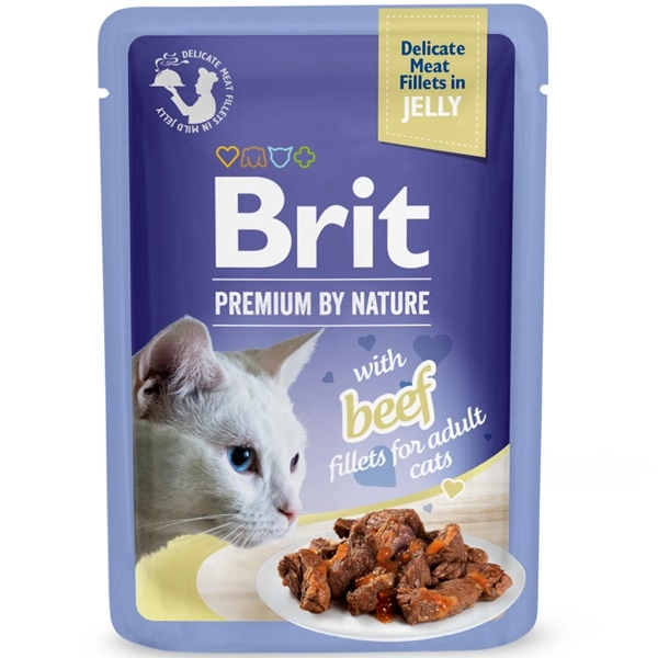 Šťavnatá kapsička Brit Premium pre dospelé mačky s filet hovädzieho mäsa. Jemné kúsky mäsa sú zaliate v hustom želé. Lahôdka, ktorou môžete svoju mačku potešiť každý deň.