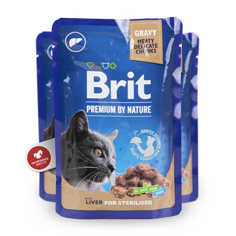 odstrániťKompletné krmivo pre kastrované mačky Brit Premium Cat for Sterilised. Receptúru s kúskami pečene a lahodnou omáčkou si zamiluje každý mačací gurmán.