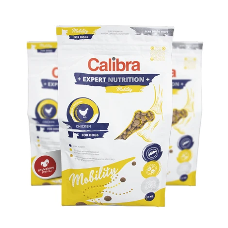 Calibra Dog Expert Nutrition Mobility je krmivo s obsahom zvýšeného množstva chondroprotektív a látok s protizápalovým účinkom, ktoré je určené dospelým a dospievajúcim psom veľkých plemien s tendenciou k problémom pohybového aparátu.