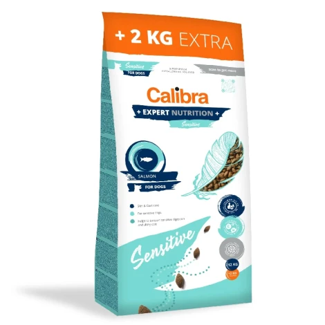 Calibra Dog Expert Nutrition Sensitive je hypoalergénne krmivo pre citlivé psy. Je vhodné pre jedince so sklonmi k alergiám, s citlivým tráviacim traktom alebo kožnými problémami. Bez pšenice, kukurice a sóji, ale s vysokým obsahom lososa. Výhodné balenie 12+2 kg!