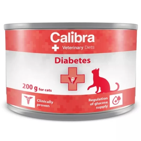 Veterinárne vlhké krmivo Calibra VD Cat Diabetes reguluje zdroje glukózy, a preto predstavuje kompletné krmivo vhodné pre mačky s diabetes mellitus - cukrovkou. Zloženie konzervy má nízky obsah monosacharidov a disacharidov.