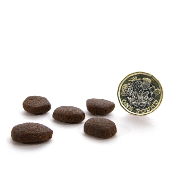 Hrubý proteín 33,0 %, obsah tuku 14,0 %, hrubý popol 9,0 %, hrubá vláknina 3,0 %, vlhkosť 8 %, omega-6 mastné kyseliny 0,9 %, omega-3 mastné kyseliny 2,0 %, vápnik 1,8 %, fosfor 1,2 %.