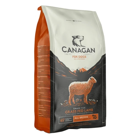 Canagan Grass-Fed Lamb je kompletné krmivo s bezobilnou receptúrou s výnimočným obsahom jahňacieho mäsa z voľného chovu. Jedinečný zdroj cenných živočíšnych bielkovín pomáhajúci s lahodnou chutnosťou. Obsahuje prebiotiká, glukozamín a chondroitín v množstve pomáhajúcom starať sa o pohybový aparát domácich psovitých šeliem. Živočíšne zložky predstavujú až 65 % a zelenina s bylinkami je v obsahnutá až z 35 %.