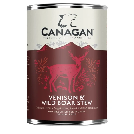 Kompletné vyvážené krmivo plné červeného mäsa zo zveriny ponúka konzerva Canagan Venision & Wild Boar Stew. Lahodnej chuti neodolá žiaden vrtiaci sa chvostík. Samozrejmosťou zloženia je obsah bio zeleniny, ovocia a byliniek. Plusový bod pridáva slávka zelenoústa s prirodzeným obsahom glukozamínu. Lososový olej poskytuje nevyhnutné omega 3 mastné kyseliny, ktoré dodávajú extra starostlivosť koži a srsti psíka.