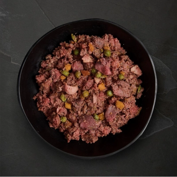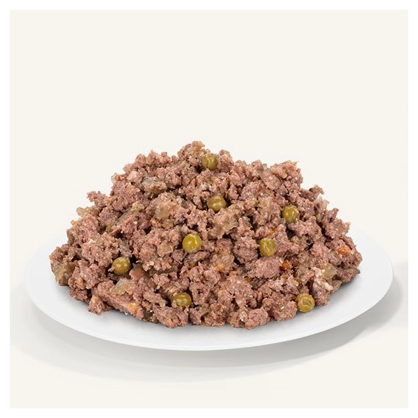Čerstvo pripravená vykostená zverina (vysoká) (35 %), čerstvo pripravené vykostené divoké prasa (30 %), batáty (sladké zemiaky), bio mrkva, bio hrach, bio brokolica, vitamíny a minerálne látky, zelené mušle (slávka zelenoústá)*, lososový olej, bio jablká, bio špenát, morské riasy, petržlen, juka, šípky, kopřiva, nechtík, brest, aníz, máta, rozmarín.