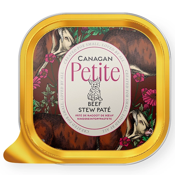 Vanička Canagan Petite s jemnou hovädzou paštétou poteší mlsné jazýčky každého dospelého chlpáčika. Obsahuje mäso, zeleninu, ovocie, bylinky a dokonca aj kĺbovú výživu. Lahodné, vyvážené krmivo, ktoré zároveň slúži ako skvelý doplnok na dochutenie granúl.