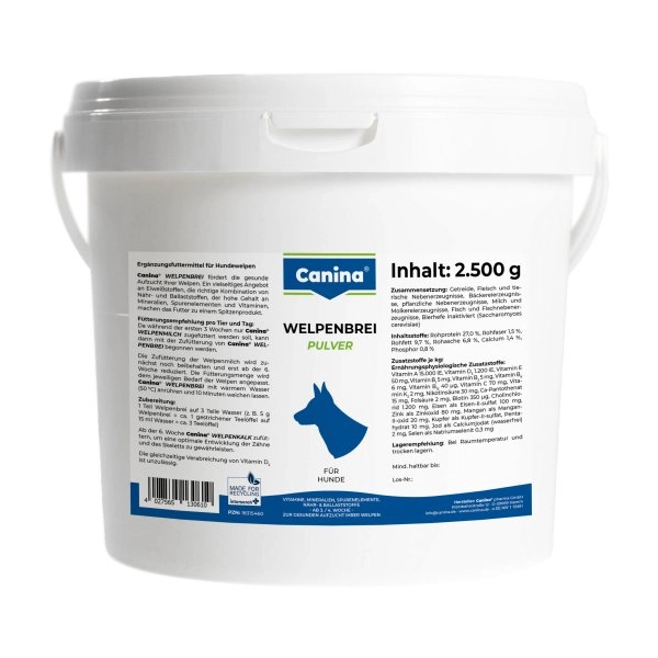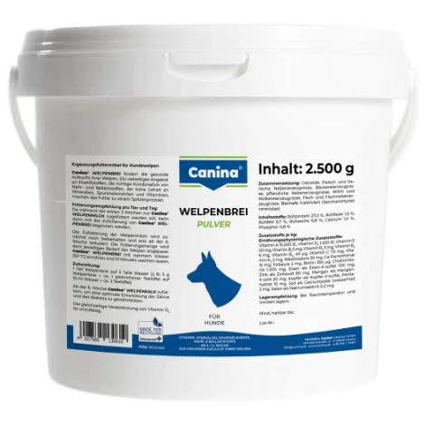 Výdatná a starostlivo nutrične zostavená kaša pre šteňatá. Je ideálnym krmivom po dokončení dojčení (3. týždeň), obsahuje všetko čo šteňa potrebuje a kaša mu napomáha v učení sa samostatnému kŕmeniu. Priaznivo ovplyvňuje tráviaci trakt, ktorý pripravuje na príjem pevného krmiva.