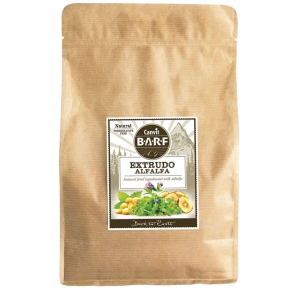 100 % prírodná kompletná príloha pre psy a mačky krmené BARF, varenou alebo inou nekompletnou stravou. Vysoko stráviteľná lucerna Alfaalfa, sušené jablká, hrášok, pivovarské kvasnice, kokosový olej, ľanový olej, yucca a zmes bylín - to najlepšie čo môžete maznáčikovi dať!