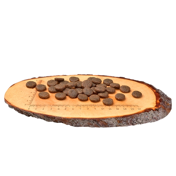 45 % zloženia tvorí múčka z lososov a morčacieho mäsa. Sacharidy sú zastúpené predovšetkým žltým hrachom, tapiokou, jablkami a cícerom. Losos je zdrojom vysoko stráviteľných proteínov. Je bohatým zdrojom omega-3 nenasýtených mastných kyselín, ktoré pozitívne ovplyvňujú mentálny vývoj, kardio-vaskulárnu sústavu a metabolizmus (znižujú obsah krvného cukru). Losos má pozitívny vplyv na kvalitu a vzhľad srsti a kože. Moriak je bohatým zdrojom stráviteľných proteínov s vysokým obsahom stopových prvkov, hlavne zinku. Obsahuje tiež vitamíny B3 a B6, ktoré ovplyvňujú činnosť mozgu, svalový tonus a sú nevyhnutné pre zdravý rast.